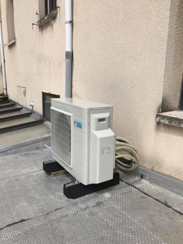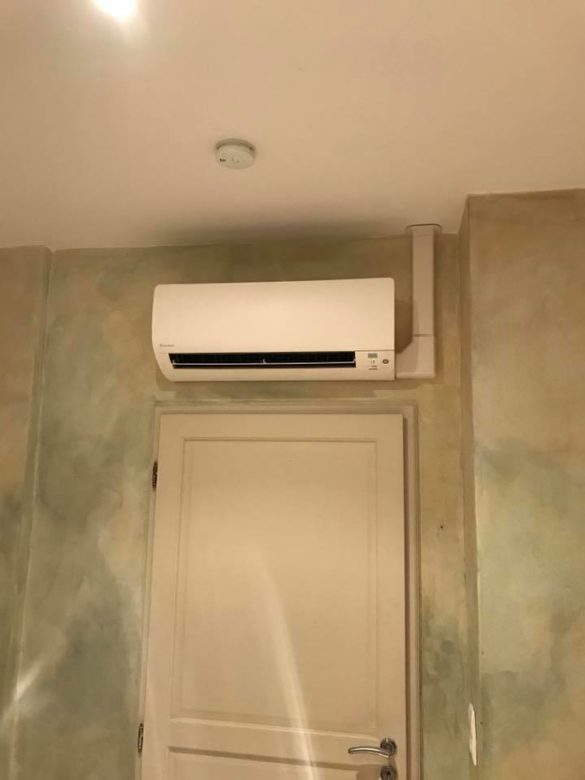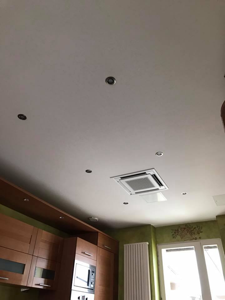 Pose complète d’un équipement de climatisation Daikin, ces travaux comportent deux cassettes encastrées dans le faux plafond avec une unité murale dans une chambre.